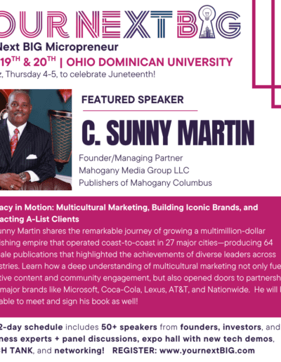 What does it take to build the largest minority-owned publishing firm in America, work with over 60 Fortune 500 brands, and be honored by four U.S. Presidents? Vision. Grit. Cultural intelligence. And a relentless commitment to excellence. In this dynamic and inspiring session, C. Sunny Martin shares the remarkable journey of growing a multimillion-dollar publishing empire that operated coast-to-coast in 27 major cities—producing 64 upscale publications that highlighted the achievements of diverse leaders across industries. Learn how a deep understanding of multicultural marketing not only fueled creative content and community engagement, but also opened doors to partnerships with major brands like Microsoft, Coca-Cola, Lexus, AT&T, and Nationwide. With decades of experience at the intersection of culture and commerce, [Speaker Name] now mentors and coaches entrepreneurs and small business owners to master the art of elite marketing and sales strategies—particularly those that speak authentically to diverse audiences. Attendees will walk away with: Proven strategies to attract A-list clients through purpose-driven, culturally aware branding Lessons in building a business that resonates across communities and commands national attention A call to action to live boldly, build legacy, and elevate your brand through inclusive, impactful storytelling Whether you're a marketer, founder, or changemaker, this session will inspire you to lead with authenticity, connect with culture, and scale with vision.