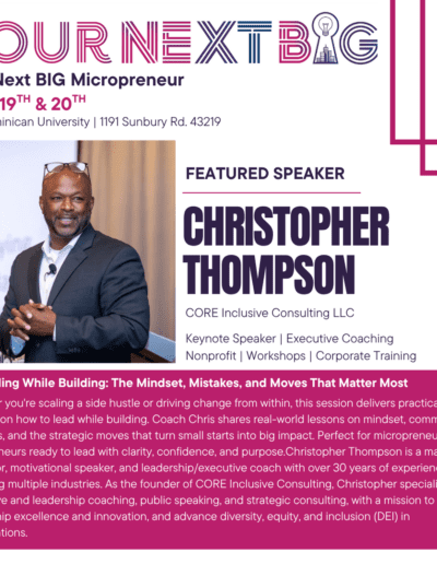 Whether you're scaling a side hustle or driving change from within, this session delivers practical insights on how to lead while building. Coach Chris shares real-world lessons on mindset, common missteps, and the strategic moves that turn small starts into big impact. Perfect for micropreneurs and intrapreneurs ready to lead with clarity, confidence, and purpose.