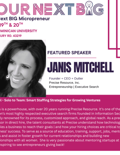 Panel Moderator, Janis Mitchell, Founder & CEO Prescise Resource, Inc.