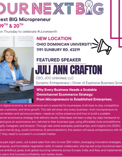 In today’s digital economy, an ecommerce arm is essential for businesses of all sizes to stay competitive, reach new customers, and drive growth. This talk will show why every business—from micropreneurs to traditional retailers and service providers—needs an online presence and how to build a scalable omnichannel ecommerce strategy that delivers results. Attendees will learn a step-by-step framework to launch and grow an ecommerce arm, tailored to their business type, using affordable tools and platforms like Shopify, Instagram, and Amazon. Through real-world examples, practical tips, and insights into 2025’s ecommerce trends (e.g., social commerce, AI personalization), this session will equip entrepreneurs with the “how-to” they need to succeed in a crowded market.