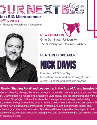 In a world of accelerating change, the future belongs to those who can anticipate, adapt, and lead with vision. Drawing from his Amazon #1 bestseller Future Ready and the groundbreaking work of his latest venture, ShopSight, Nick explores how the convergence of strategy, sustainability, innovation, and technology is redefining what it means to lead—and shop—in the 21st century. This keynote reveals how empowering communities, leveraging AI, and designing for impact can transform both organizations and industries. Attendees will leave inspired and equipped to build future-capable teams, reimagine customer engagement, and create meaningful, sustainable value in a hyper-connected world.